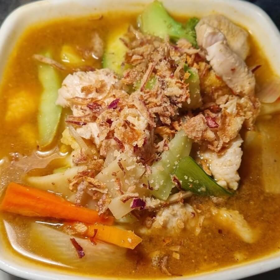 (Chicken or Pork Salad) Slices of grilled chicken or pork tossed with a salad of sliced cucumber, lemongrass, red onion, coriander, spring onion, red chilli & dressed with chilli jam and lime juice