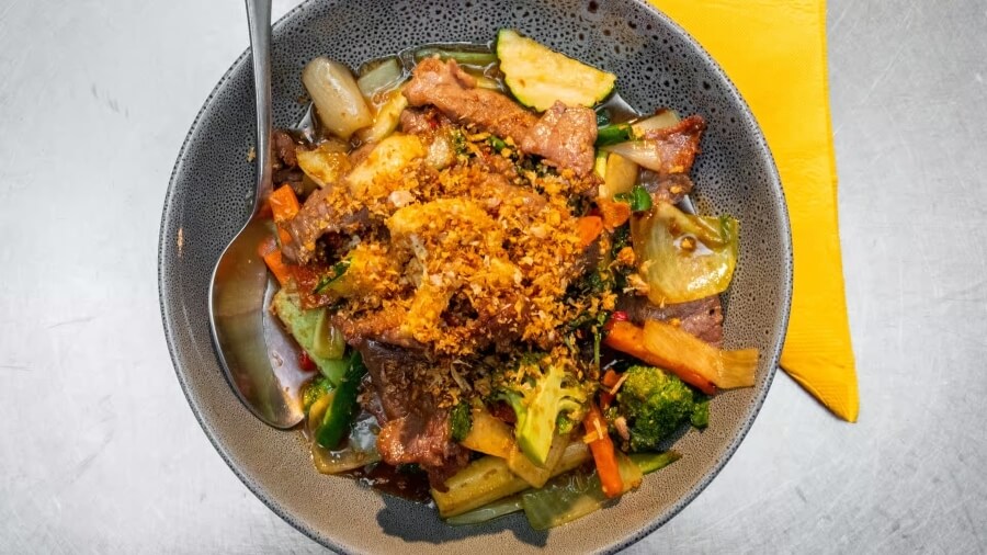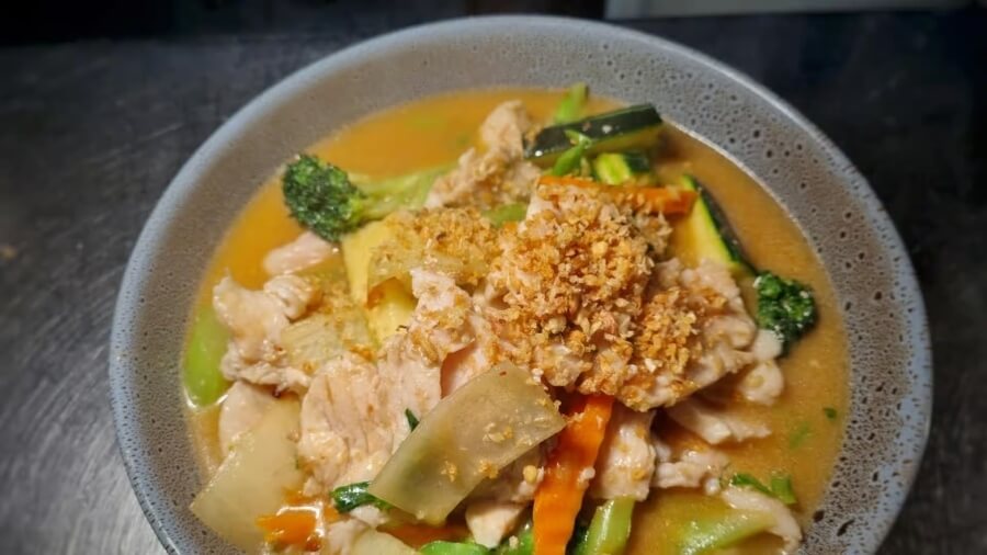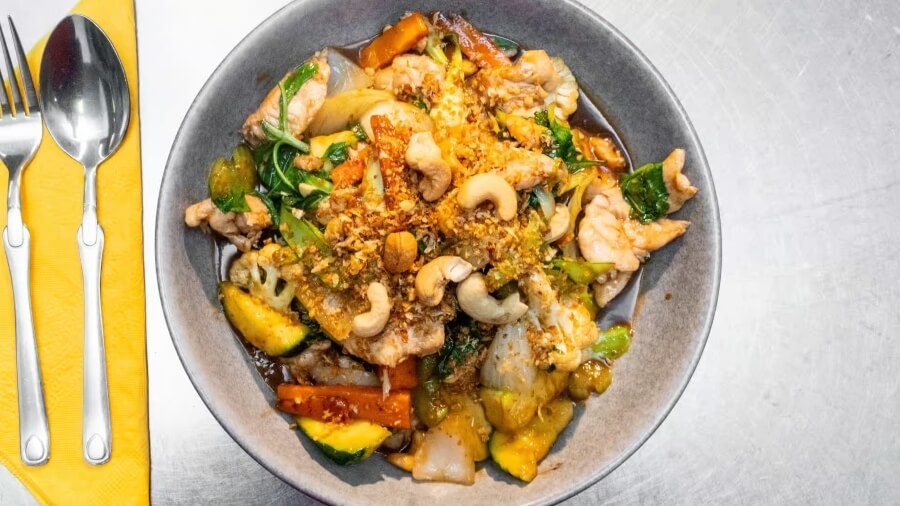 Fresh chilli with basil & mixed vegetables stir-fried with Thai seasoning