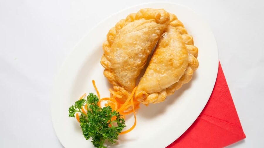 Vegetarian. Vegan option. Vegetable curry puff pastry served with sweet chilli sauce.