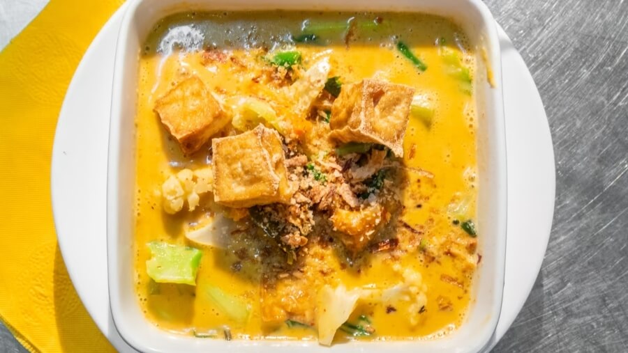 Traditional Thai green curry with green vegetables, bamboo shoots, baby corn & fresh basil